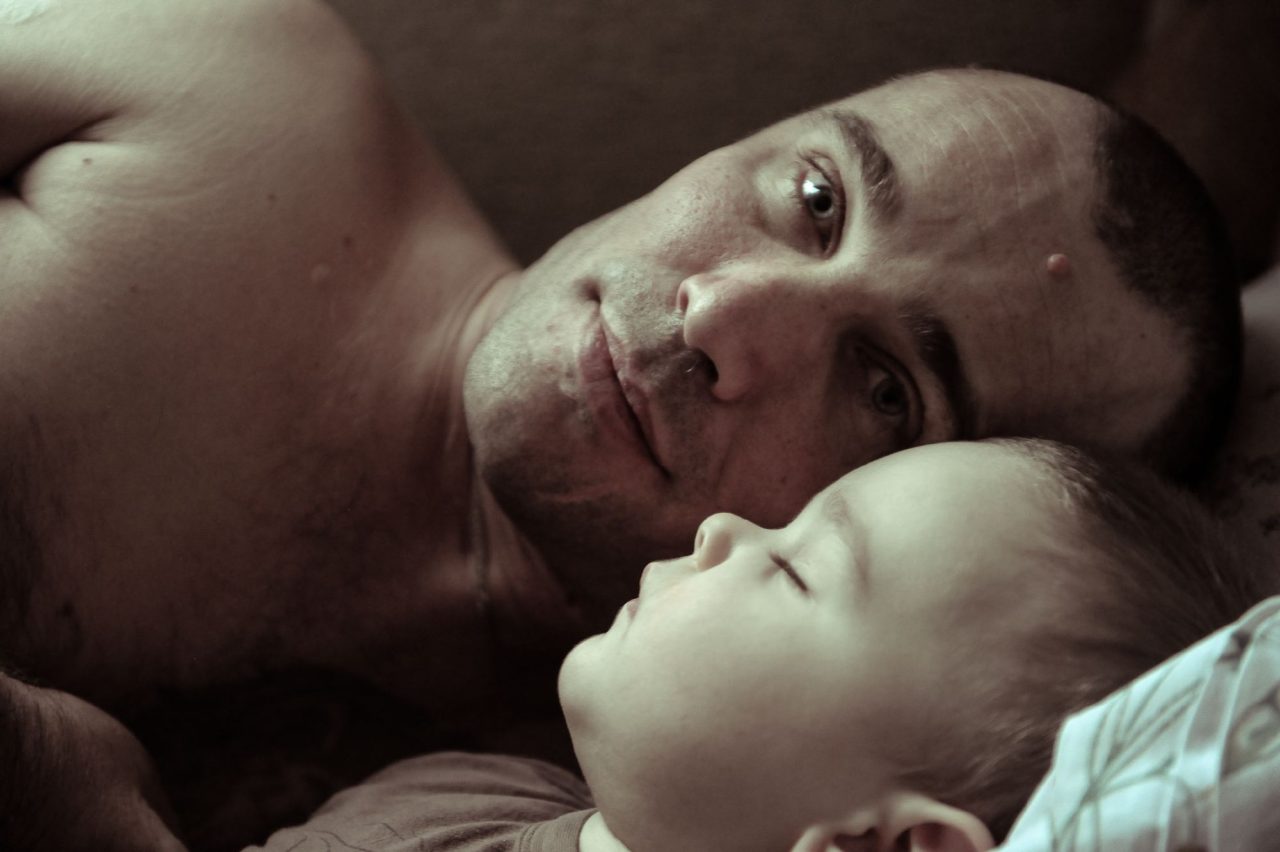 Сегодня Женя просыпается в девять утра, и все тут же приходит в движение. Женя прискакивает к папе, влезает на кровать, и они вместе смотрят в окно, Женя выискивает во дворе птиц, тычет в них пальцем и кричит «Кар!», а Володя радостно смеется, гладит малыша и ведет с ним беседы.