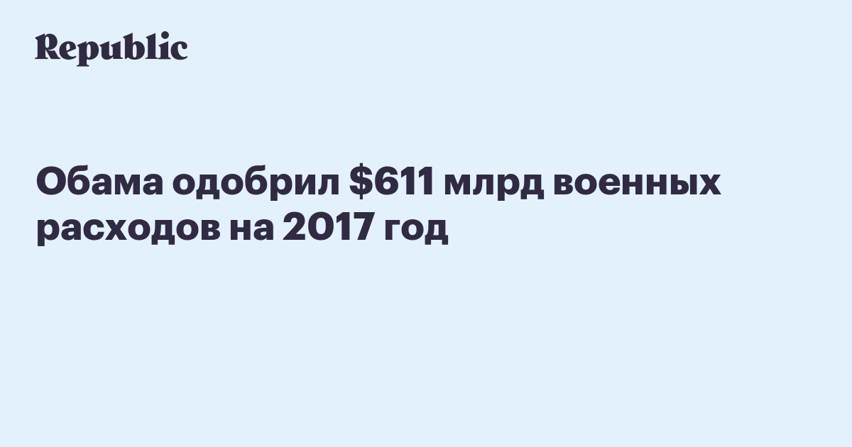 Согласно закону об оборонной политике США на 2017 год, военные расходы Пентагона составят $611 млрд. Соответствующий документ подписал президент США Барак Обама, передает AP.