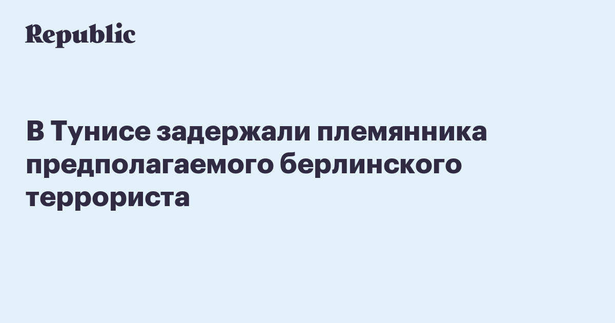 В Тунисе задержали племянника предполагаемого берлинского террориста Аниса Амри, передает BBC News со ссылкой на МВД страны.