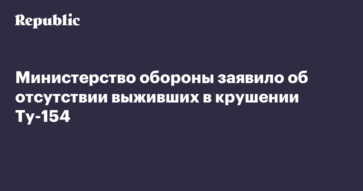 Министерство обороны заявило об отсутствии выживших в крушении Ту-154