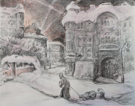 Поэтому я остановлюсь на «избранных аутентиках» (созданных именно в блокированном умирающем городе) выдающегося гранда советского пантеона Алексея Пахомова, члена ЛОСХа Елены Марттилы, обнародовавшей свои юношеские блокадные листы только в недавнее время, и восьмилетней Валентины Тонск, ведшей рисованный дневничок, не ставшей впоследствии художником в социальном смысле.