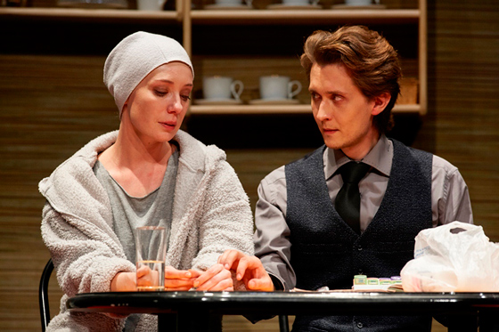 © С.Петров / Театр Наций Кулябин разглядел в пьесе сериальную природу, близкую современному зрителю, — крутая ведь мелодрама: умирающая жена, молодая любовница, финансовый кризис, сюжет на все времена — и создал на сцене точный физиологический очерк нравов, где Иванов как будто даже и не герой. Он, по словам самого режиссера, «из соседнего подъезда, среднестатистический человек». Иванов хоть и приходит к Шурочке на день рождения не с мини-водопадом, как Бабакина (прекрасная Марианна Шульц), а с книгой, но сам плоть от плоти этой среды. Никакой он не интеллектуал и уж тем более не борец, а просто слабый и запутавшийся человек, в котором еще не окончательно умерла совесть. Евгению Миронову это играть трудно и непривычно, он герой по определению, поэтому его лучшие сцены — с партнершами. Они здесь солируют.