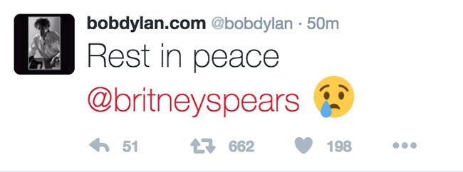 Хакеры взломали твиттеры Sony Music и Боба Дилана и написали там про смерть Бритни Спирс