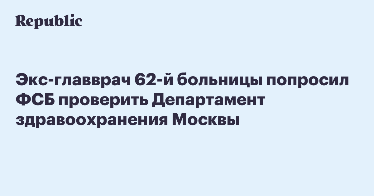 Экс-главврач 62-й больницы попросил ФСБ проверить Департамент здравоохранения Москвы
