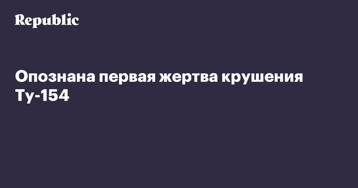 В Москве опознали первую жертву крушения Ту-154 в Черном море. Об этом сообщает ТАСС со ссылкой на источник в медицинских кругах столицы.
