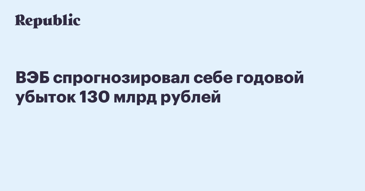 ВЭБ спрогнозировал себе годовой убыток 130 млрд рублей