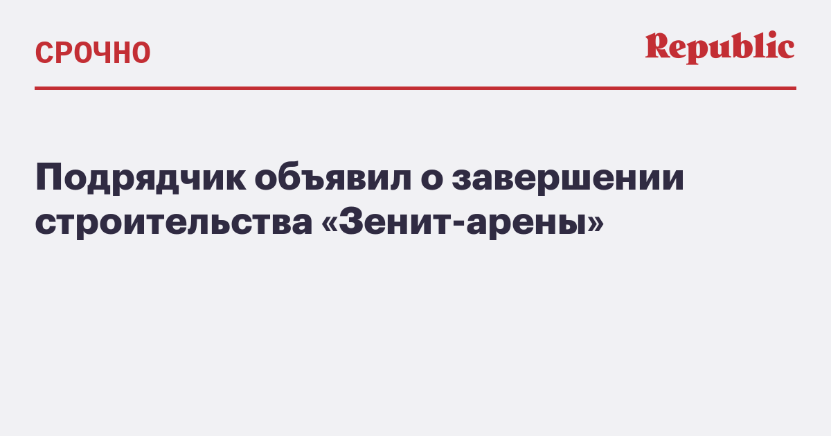 Подрядчик объявил о завершении строительства «Зенит-арены»