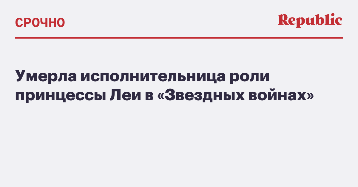 Умерла исполнительница роли принцессы Леи в «Звездных войнах»