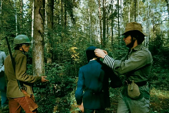 «Мухомор». Расстрел. 1979 В отличие от сюрреализмов, использовавших принципы травматизирующих машин войны, «мухоморы» заимствуют формы массовой военной подготовки и занятий по гражданской обороне. Сенсорная депривация в их акции «Лекция о вреде нейтронной бомбы» (1982) похожа на военные эксперименты после Второй мировой; в ней милитаристские опыты над людьми скрещены с восприятием конфликтов эпохи «диванных войн», когда зритель созерцает конфликты, идущие где-то очень далеко, по телевизору. Половина зрителей на акции была лишена способности видеть, половина — способности слышать. Невидящие четырежды прослушали лекцию о вреде нейтронной бомбы и химического оружия, причем с каждым разом лектор читал все тише. Неслышащие смотрели слайд-шоу с экзотическими пейзажами, пока проекция не была закрашена остро пахнущей нитрокраской, «нанесшей удар» по обонянию присутствующих.