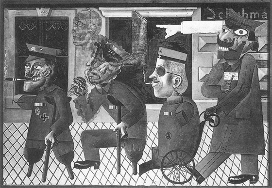Утраченная картина Отто Дикса «Инвалиды войны» (1920) Наблюдение за солдатами Первой мировой, страдавшими посттравматическим синдромом, из-за которого их преследовали повторяющиеся кошмары о войне, заставило Фрейда в статье «По ту сторону принципа удовольствия» (1920) пересмотреть свои представления об устройстве психического аппарата. Управляющий психикой принцип удовольствия должен был быть подчинен влечению к смерти, проявляющемуся как непреодолимое повторение неразрешимого, мучительного и нелепого в судьбе человека [1]. Это повторение Фрейд связал с возвращением психики к травматическому следу, не имеющему никакого смысла и неустраняемому, если попробовать ему смысл этот придать [2]. Случайное, превращающееся в автоматическое, встреча следа (индекса) и машины (машины войны), тела и аппарата (например, фотоаппарата) — постоянный мотив работ дадаистов и сюрреалистов: от Марселя Дюшана с его оптическими машинами и Георга Гросса с его буржуа-автоматами до постсюрреалистов вроде Яна Шванкмайера. Вместе с тем статья «По ту сторону принципа удовольствия», написанная под впечатлением от Первой мировой войны, — первый текст, где Фрейд так ясно артикулирует скепсис по отношению к прогрессу [3], которому, по Фрейду, противостоит именно повторение случайного и травматического.
