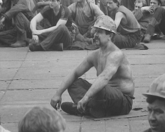 Кадр из фильма «Страйк» Внезапно обнаруженная в киевских архивах, уже почти забытая работа режиссеров студии «Укркинохроника» рассказывает о бунтах шахтеров Донбасса, представляя в несколько ином свете население Донецка, знакомое большинству зрителей исключительно по новостным сюжетам с фронта и тылов ДНР. Познавательная история по-настоящему левого движения в Донбассе — и его умелого слива теми, кто в будущем образует костяк печально известной Партии регионов.