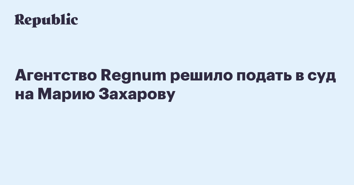 Агентство Regnum намерено подать в суд иск о клевете к официальному представителю МИД РФ Марии Захаровой, сказано в заявлении издания.