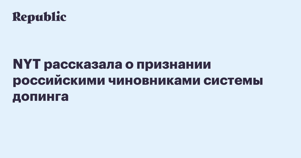 Российские чиновники впервые признали, что в стране существует целая система приема допинга. Об этом пишет The New York Times.