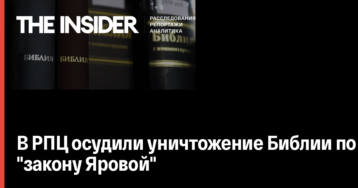 В Русской православной церкви осудили решение мирового суда во Владивостоке об уничтожении Библии по «закону Яровой». Как пишут «Ведомости», об этом рассказала глава юридической службы Московской патриархии Ксения Чернега.
