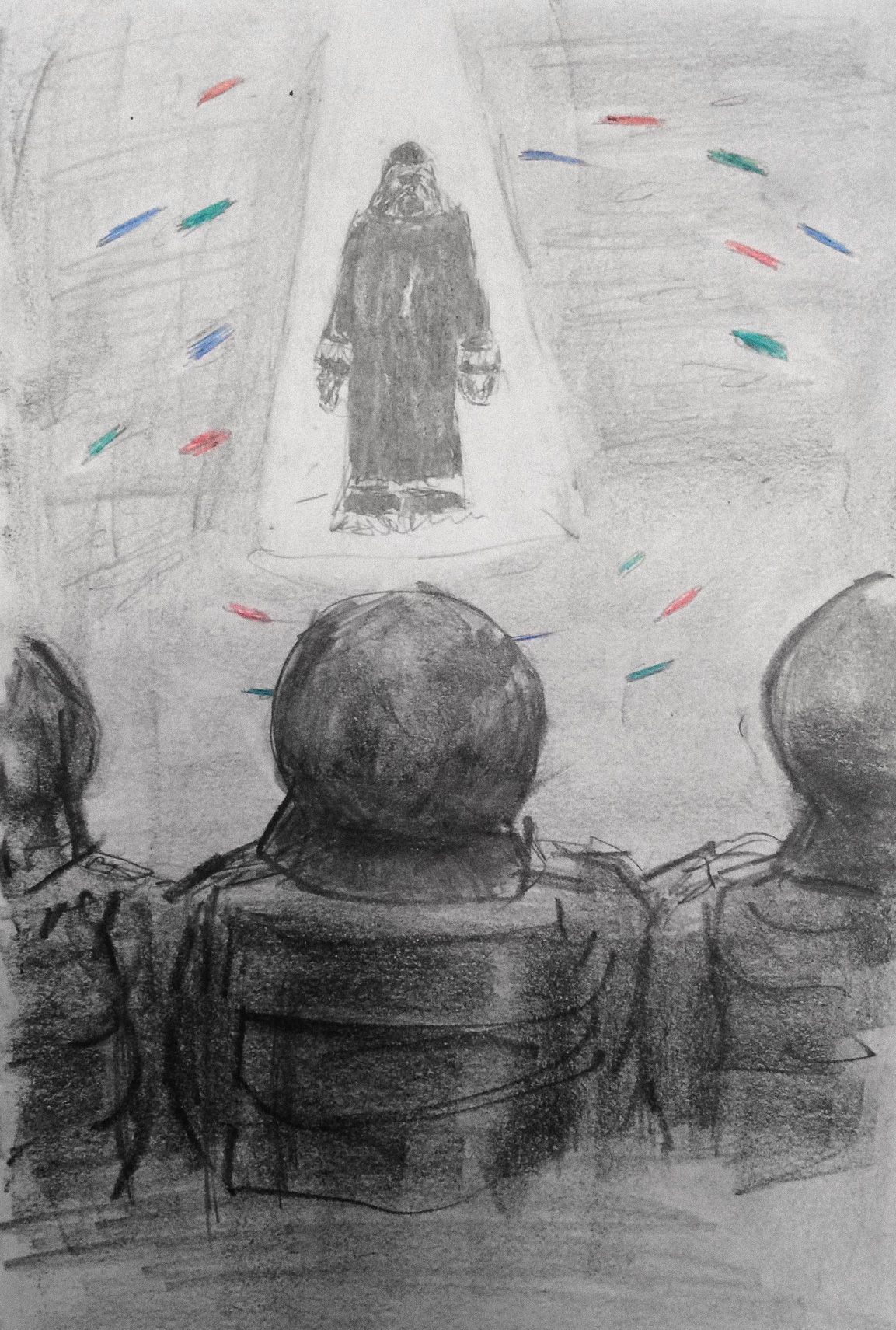 Специализированная исправительная колония № 1984 приветствовала прибывающий этап серым небом, огромной стаей ворон, кружившей в небе, создавая причудливые геометрические формации — мечту математика, работающего с многообразиями Калаби — Яу, — и группой крупных людей в черных, глянцевых, отражающих небо и ворон доспехах. Завидев их издали, Чубакка сильно разволновался, думая, что перед ним фабрика по клонированию Дарта Вейдера, но по мере приближения все больше и больше успокаивался, так как темная сторона силы хоть и отчетливо ощущалась, но все же была явно недостаточной для антиджедая, тем более стольких его копий.
