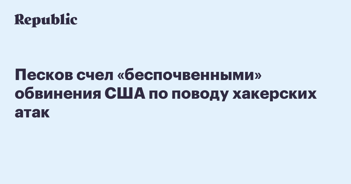 Песков счел «беспочвенными» обвинения США по поводу хакерских атак