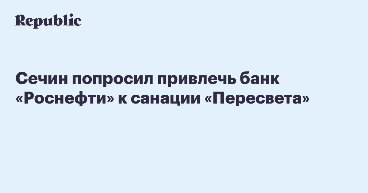 Сечин попросил привлечь банк «Роснефти» к санации «Пересвета»