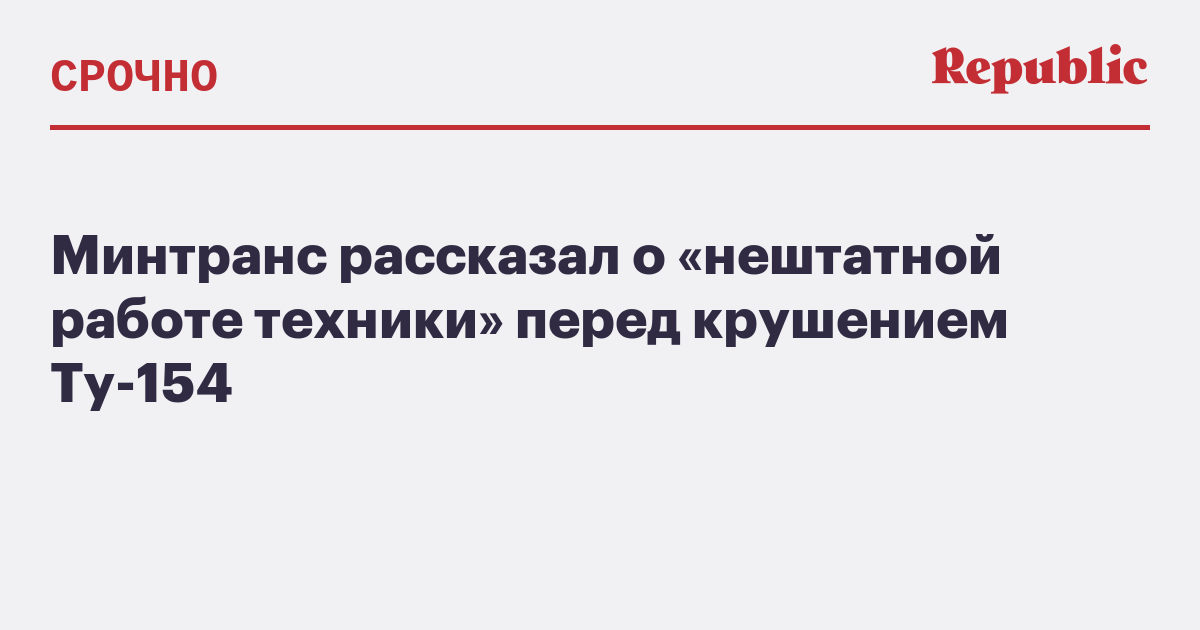 Минтранс рассказал о «нештатной работе техники» перед крушением Ту-154