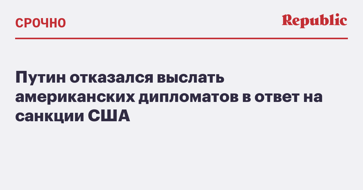 Президент России Владимир Путин отказался выслать из России американских дипломатов в ответ на санкции США. Заявление Владимира Путина размещено на его сайте.