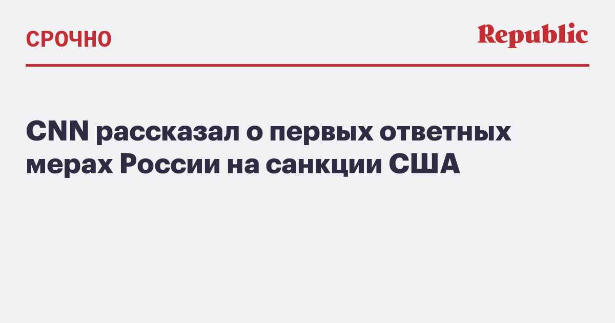 Москва после заявления о введении США антироссийских санкций предприняла первые ответные меры. Об этом CNN сообщил представитель американских властей.