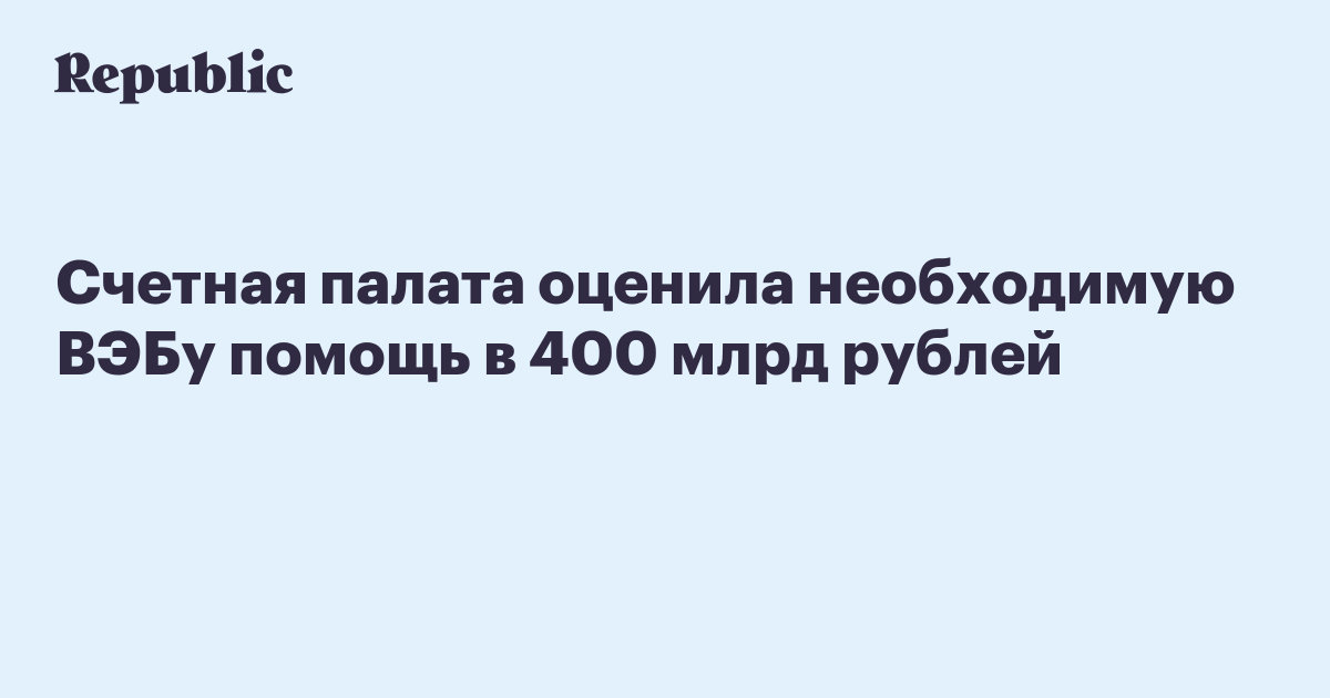 Счетная палата оценила необходимую ВЭБу помощь в 400 млрд рублей