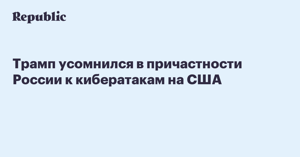 «Это мог быть кто-нибудь еще [помимо контролируемых Москвой хакеров]. Я также знаю вещи, которые другие люди не знают, и поэтому мы не можем быть уверены», – заявил Трамп.