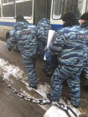 Еще четверо человек за одиночные пикеты на Житной улице в Москве, где находятся здания Федеральной службы исполнения наказаний и Министерства юстиции. Задержаны Павел Кузнецов, Михаил Лашкевич, Леонид Дуброво и Татьяна Тарвид. Ранее там же были задержаны Елена Захарова и Мария Рябикова. Все шестеро в настоящее время находятся в полицейском автобусе.