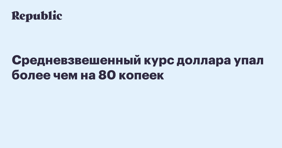 Средневзвешенный курс доллара упал более чем на 80 копеек