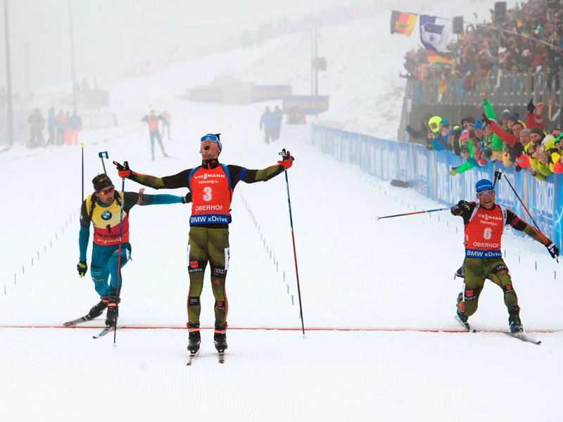 Вторым финишировал соотечественник Шемппа Эрик Лессер (1 промах; +0,4 секунды), замкнул тройку призеров француз Мартен Фуркад (2 промаха; +0,4 секунды). Лучший результат среди россиян показал Антон Бабиков (2 промаха; +53,1). ставший восьмым.