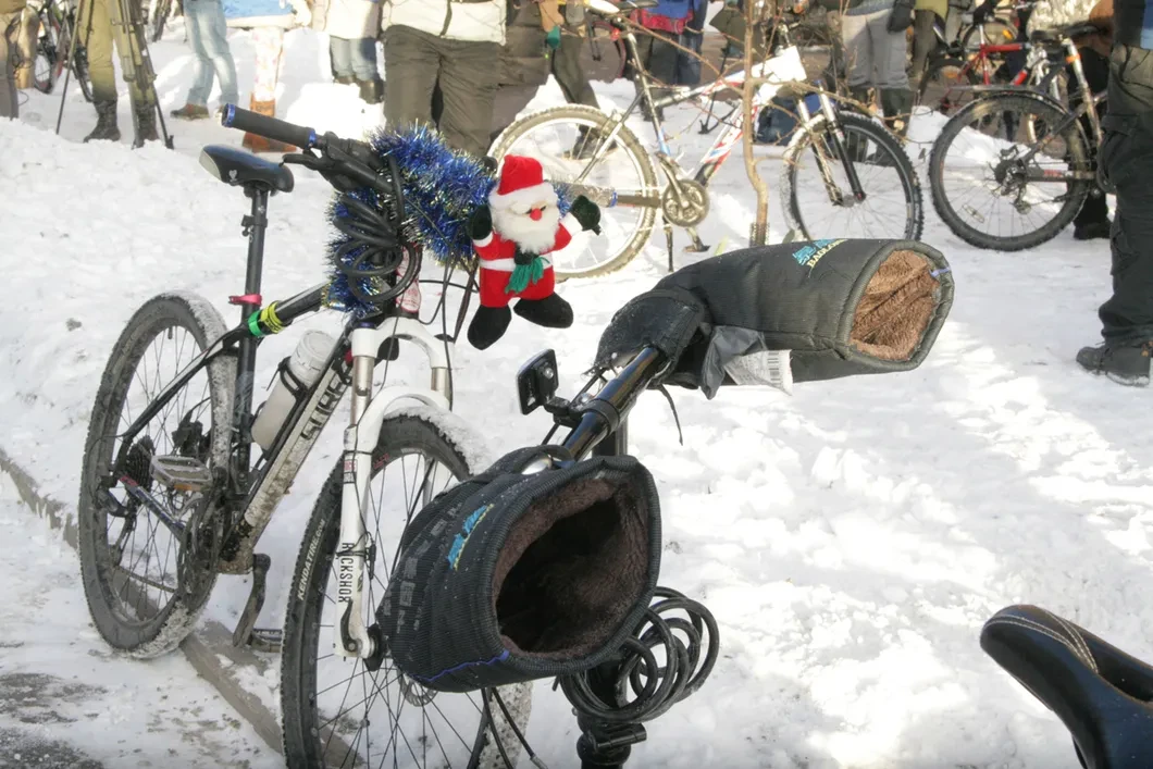Мои волосы на морозе становятся белыми, рядом стоят двое мужчин в горнолыжных очках — у обоих борода в инее. Собираться начинают за час до старта. Пока снуешь между велосипедами, кажется, что даже минус 27 нет. В глаза светит солнце, ветра нет, люди, сближаясь, начинают пускать пар изо рта, как вейперы — знакомятся, смеются.