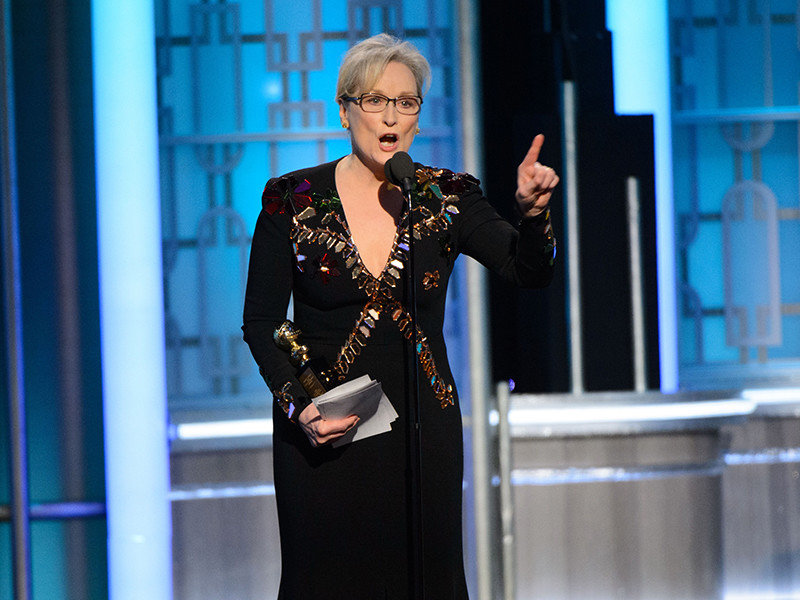 Известная актриса Мерил Стрип, получившая "Золотой глобус" за выдающиеся заслуги в кино, в своей речи на церемонии вручения премии обрушилась с резкой критикой в адрес избранного президента США Дональда Трампа, сообщает The Daily Beast. Будущий глава государства уже отреагировал на выпады Стрип.