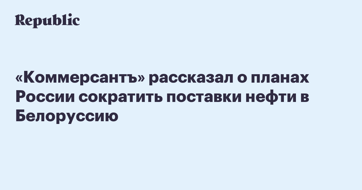 «Коммерсантъ» рассказал о планах России сократить поставки нефти в Белоруссию