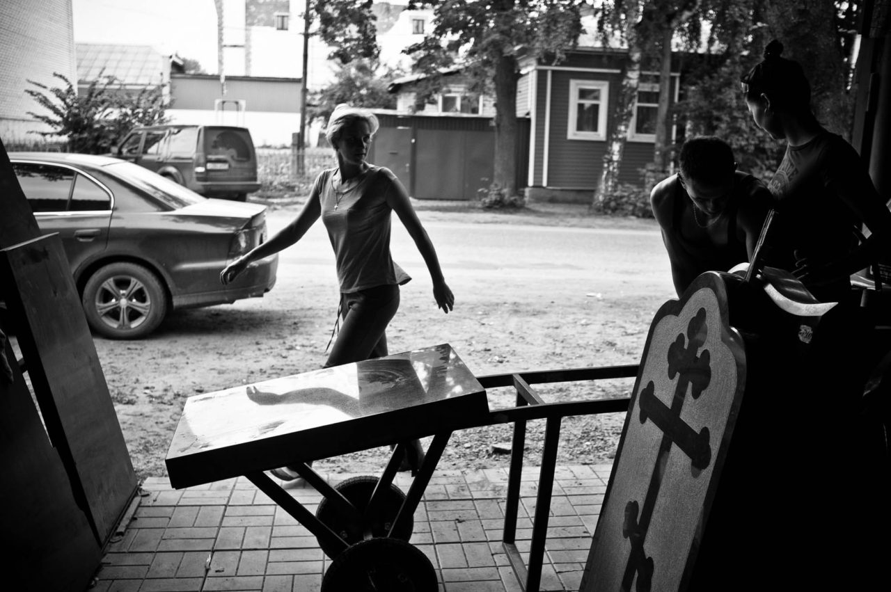 В мастерскойФото: Антон Карлинер Предприниматели боялись, что в кризис продажи просядут, но вопреки опасениям их стало только больше. В первом полугодии 2016 года в России родились 928 тысяч человек, умерли 960 тысяч. В 2016 году надпись «Господь, жги!» — которую столько лет видели выходящие из Покровского собора прихожане, перестала бросаться в глаза. Сотни объявлений о мини-кредитах и распродаже консервных крышек полностью скрыли призыв.