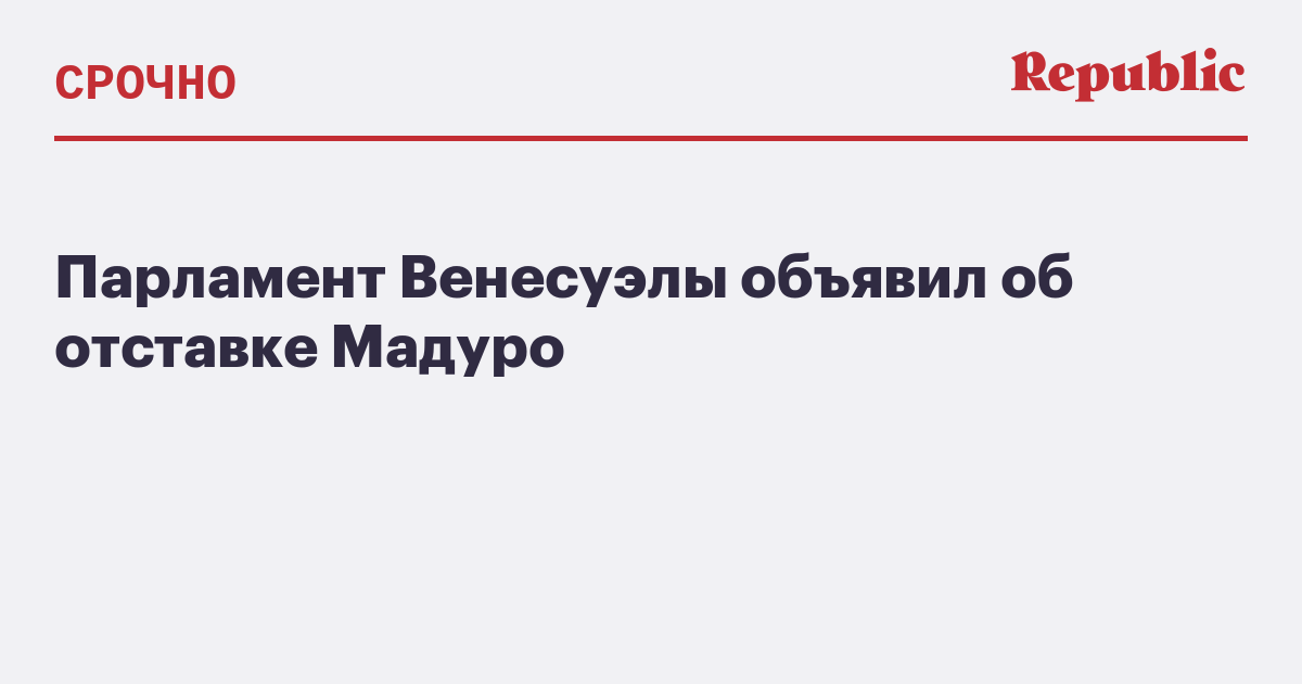Национальная ассамблея Венесуэлы объявила президента страны Николаса Мадуро «оставившим свой пост». Об этом сообщает El Nacional.