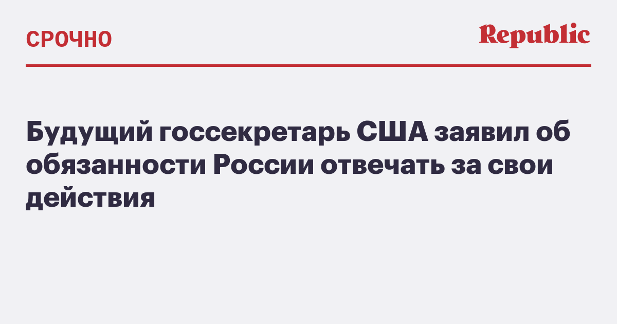 Будущий госсекретарь США заявил об обязанности России отвечать за свои действия