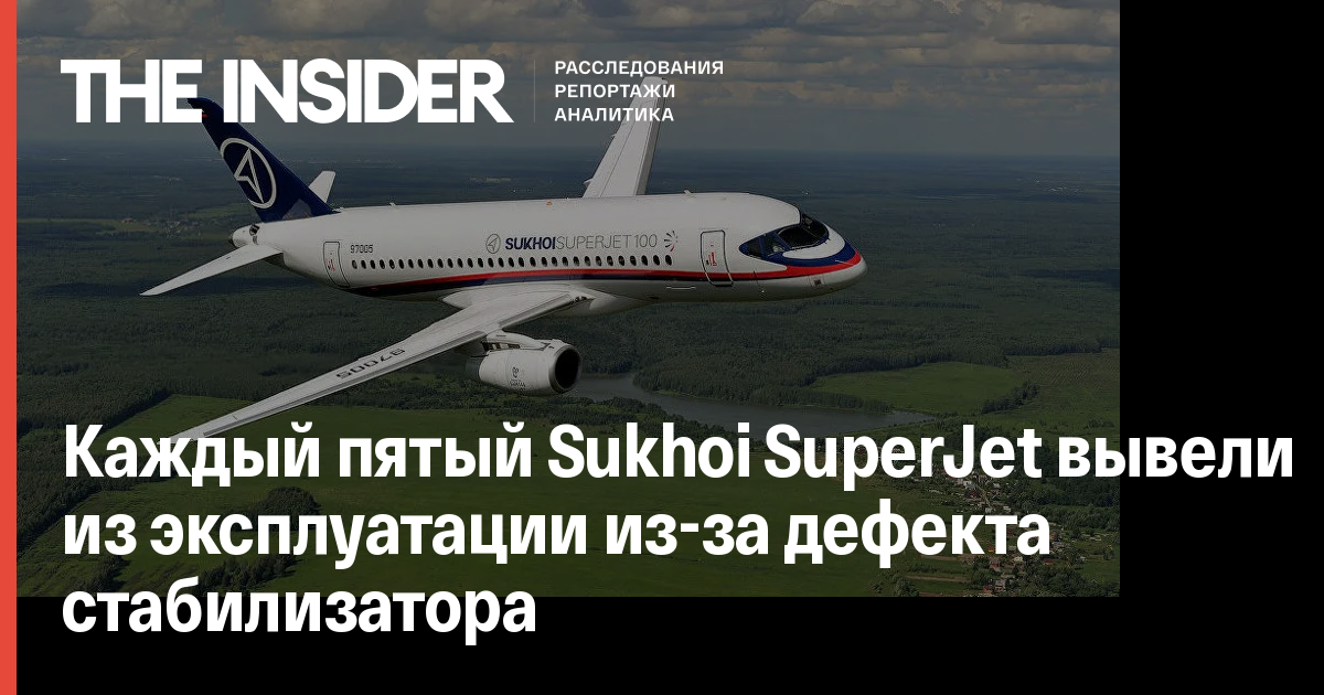 Каждый пятый Sukhoi SuperJet вывели из эксплуатации из-за дефекта стабилизатора