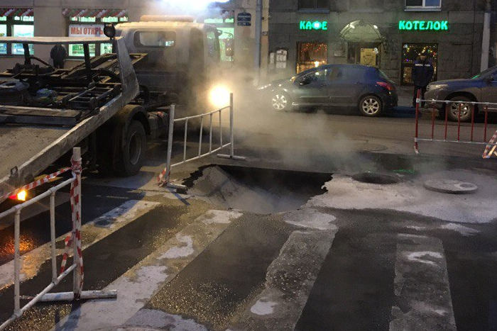 В центре Петербурга из-за прорыва трубы провалился асфальт