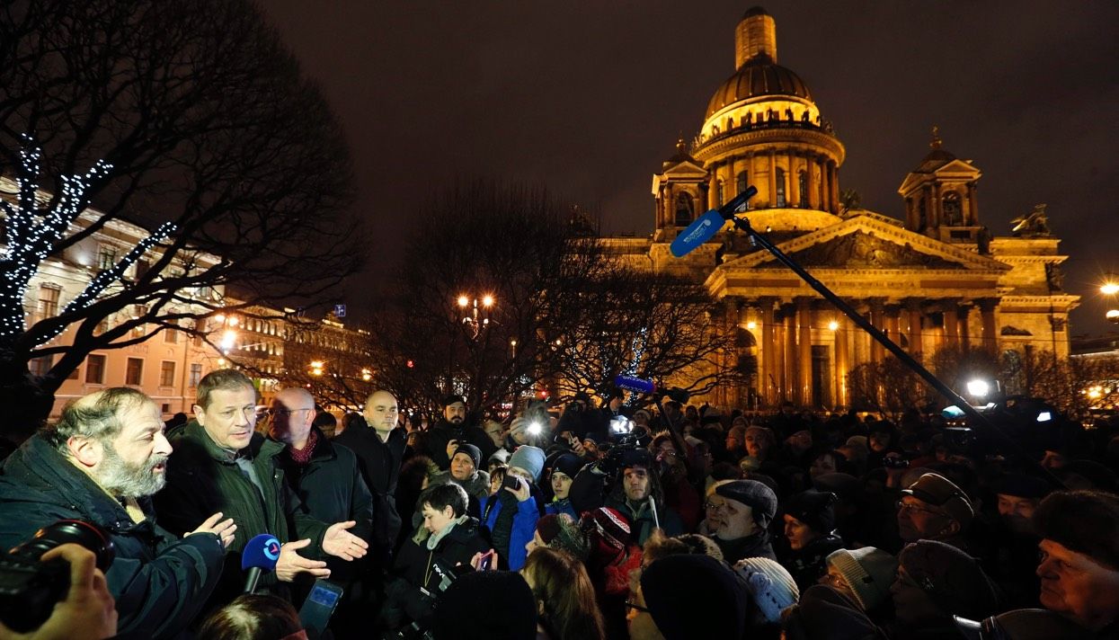 Резник продолжил свою речь предложением отправить в отставку губернатора Петербурга Георгия Полтавченко, на что получил порцию аплодисментов. Второй раз протестующие аплодировали депутату Борису Вишневскому, который сказал, что передача Исаакиевского собора церкви будет оспорена в суде (судом губернатору он уже грозил — 10 января, когда стало известно, что вопрос с Исаакиевским собором решен). По мнению оппозиционера, есть хорошие шансы на победу, поскольку нарушений «полно».