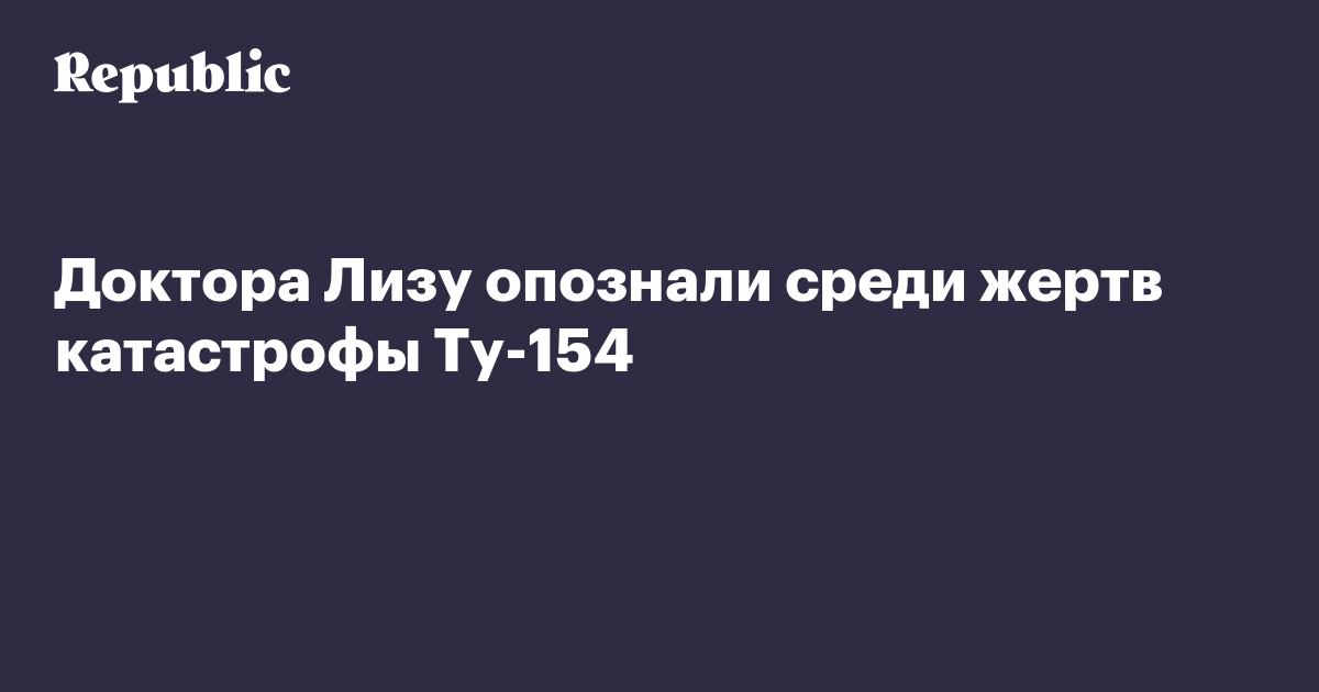 Доктора Лизу опознали среди жертв катастрофы Ту-154