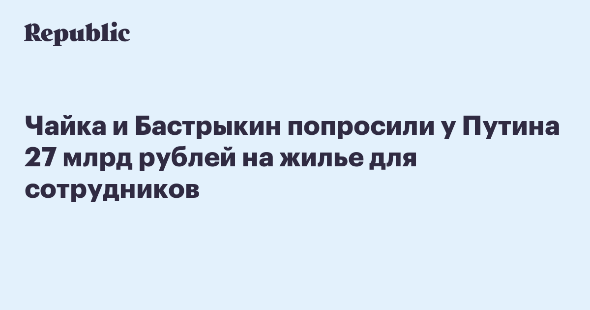 Чайка и Бастрыкин попросили у Путина 27 млрд рублей на жилье для сотрудников