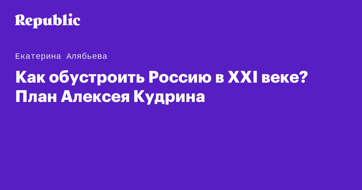 Как обустроить Россию в XXI веке? План Алексея Кудрина
