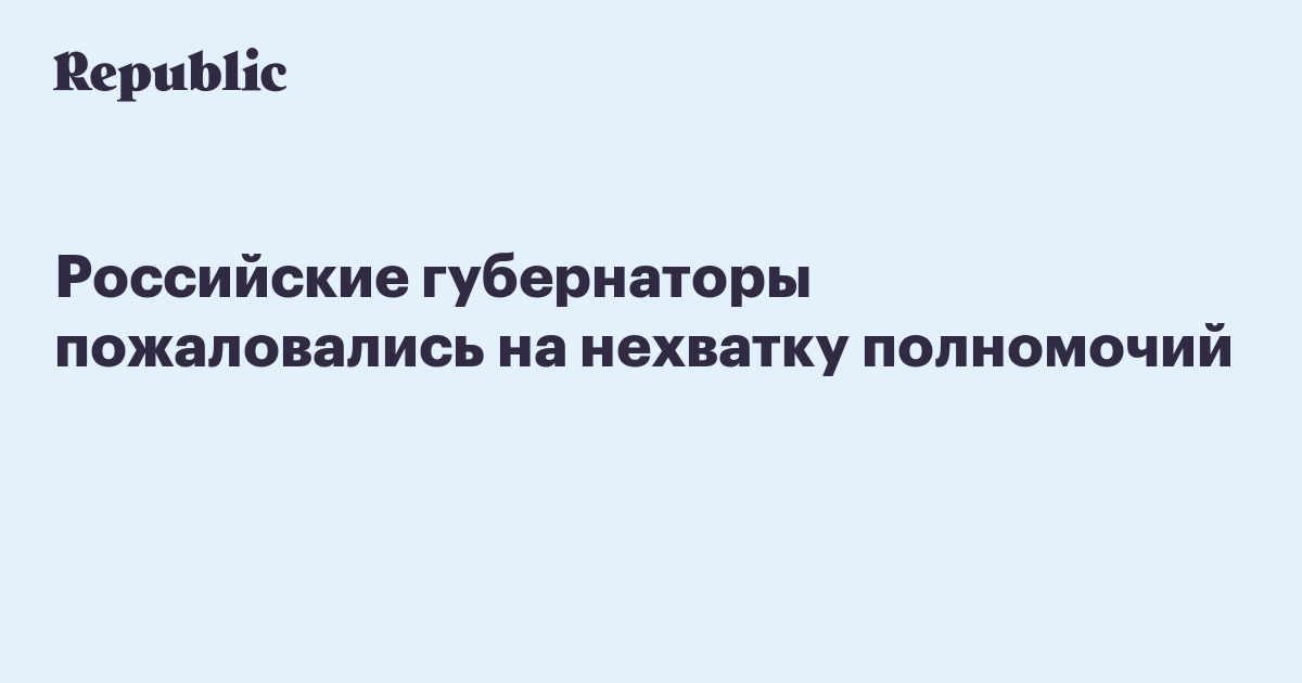 Руководители российских регионов жалуются на нехватку полномочий и стимулов для развития, пишут «Ведомости».