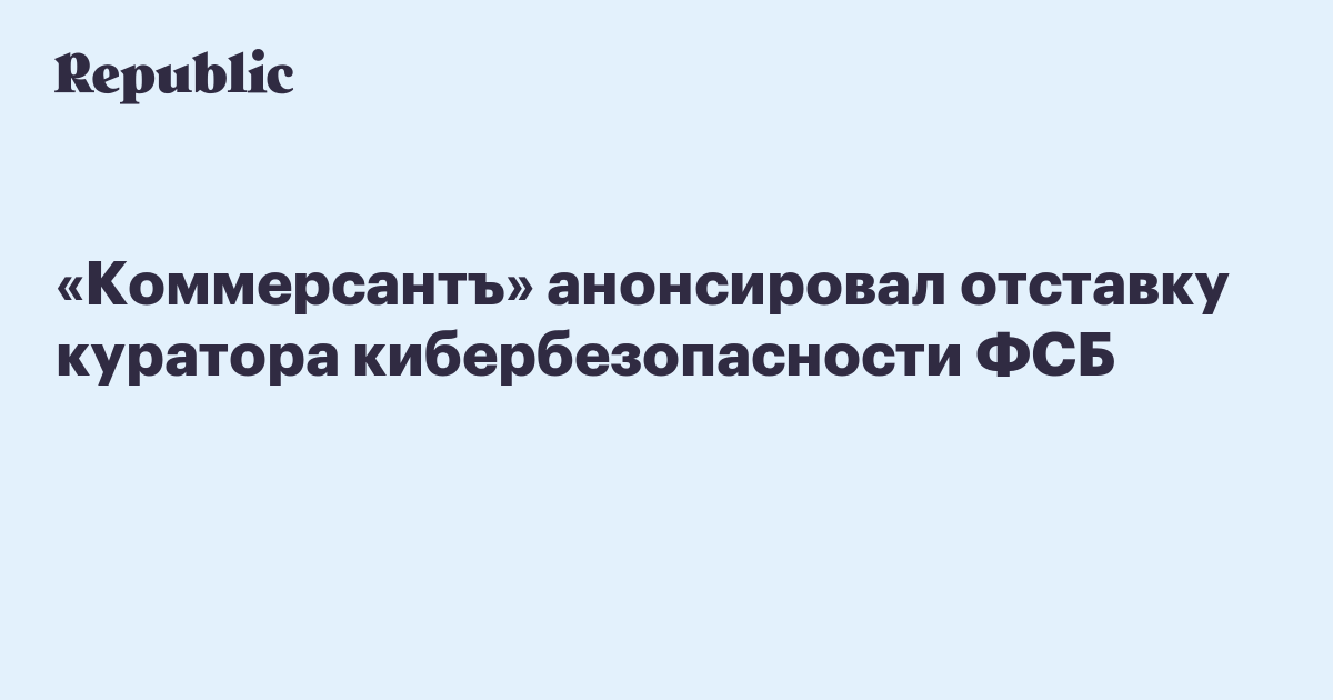 «Коммерсантъ» анонсировал отставку куратора кибербезопасности ФСБ