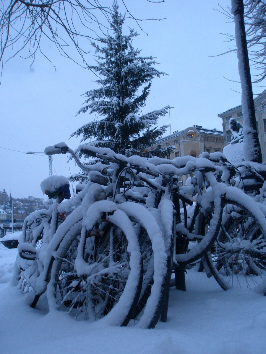В Стокгольме я был в седьмой раз, но впервые видел этот город в снегу. Меня по-прежнему интересовали велосипеды. Как они переживают зиму? Не улетают ли они на юг? Не залегают ли они в берлогу?