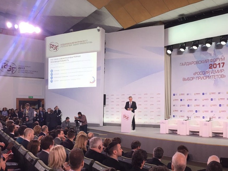 Панельная дискуссия второго дня работы Гайдаровского форума – 2017 «Устойчивый экономический рост: модель для России» прошла в формате экспертного обсуждения ключевого доклада. С ним выступил председатель совета Центра стратегических разработок, председатель КГИ Алексей Кудрин.