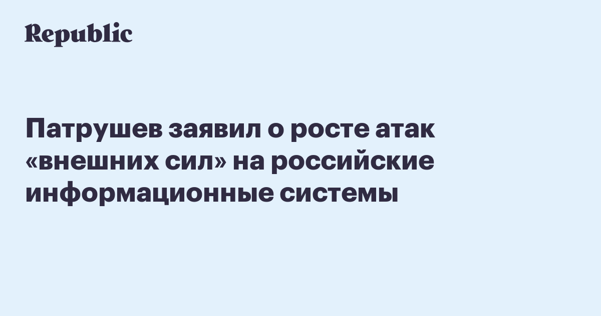 Россия зафиксировала «значительное увеличение» атак на ее информационные системы «со стороны внешних сил», сказал в интервью «Российской газете» секретарь Совета безопасности РФ Николай Патрушев.