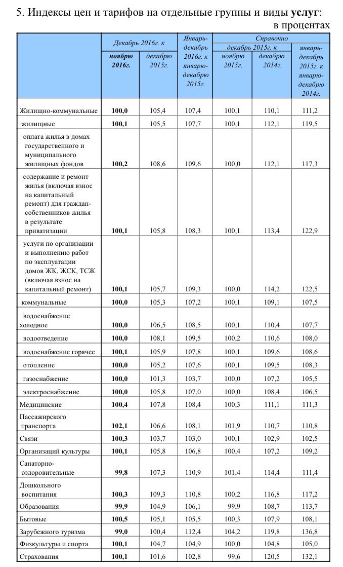 Точно так же неравномерно росли и тарифы ЖКХ, хотя в среднем по стране (по официальным данным) они выросли на 4%, во многих регионах рост был заметно выше общей инфляции (скажем, в Москве - 7,4%, Петербурге - 6,5%, в Якутии и Камчатском крае - 6% и т.д.), а отдельные услуги подорожали еще значительнее. Так, за 2015-2016 гг. оплата жилья выросла на 21%, а дошкольное воспитание - на 26%.