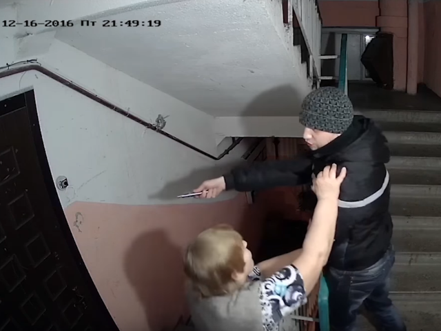 Также на видео попадает молодой человек, предположительно, в состоянии алкогольного опьянения. На одной из записей видно, как парень падает и кувыркается на лестнице, на другой он предлагает своей бабушке разобраться с владельцем камеры, но женщина уводит бунтаря домой.