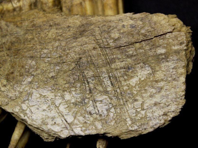 Ученые воспользовались тем, что примерно 36000 костных фрагментов, найденных в пещерах Блюфиш, хранятся в Канадском историческом музее в городе Гатино, недалеко от Оттавы. Эти кости принадлежат мамонтам, оленям карибу, диким лошадям и бизонам. Проведя два года за тщательным изучением всех костей, исследователи нашли на пятнадцати из них отметины, которые сочли «неоспоримыми следами человеческой деятельности». Еще на примерно двадцати костях такие следы сочли высоковероятными. «Ряд прямых, V-образных линий на поверхности костей был нанесен каменными орудиями, используемыми для сдирания кожи животных, – объясняет Ариана Берк. – Это бесспорные следы резания, созданные людьми».