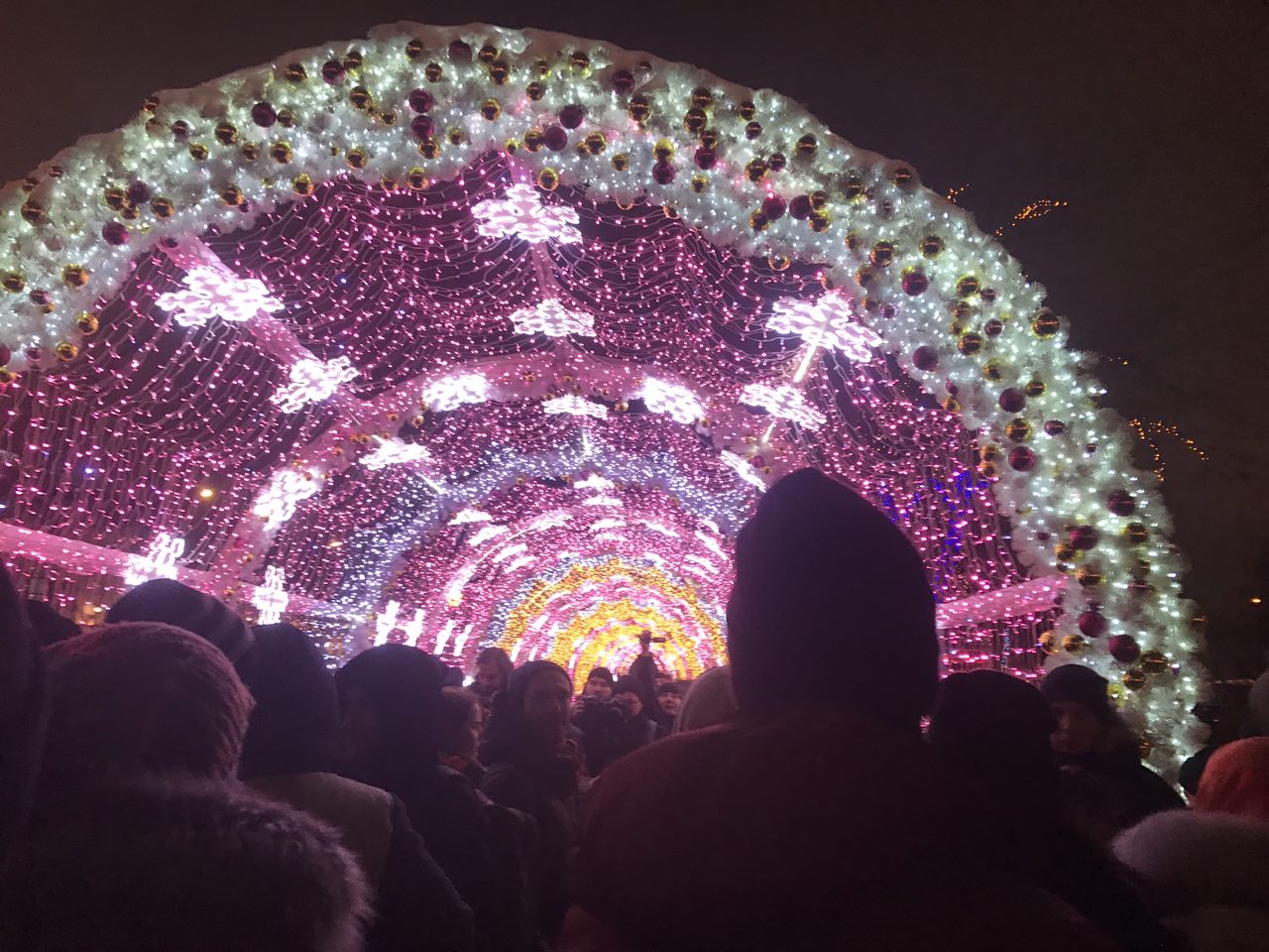 Шествием шли по местам, которые последние годы олицетворяют собой торжество собянинского урбанизма: вдоль бульваров стоят круглые арки, увешанные мелкими цветными лампочками. Эти лампочки и освещали идущих.